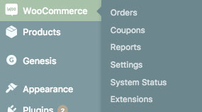 On your dashboard you’ll see that in addition to the “WooCommerce” tab, there is also an associated WooCommerce “Products” tab.